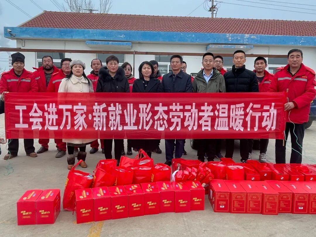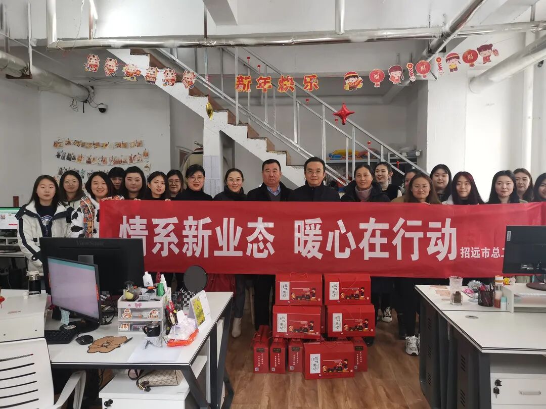▲走访慰问招远新业态工作者并送上慰问品